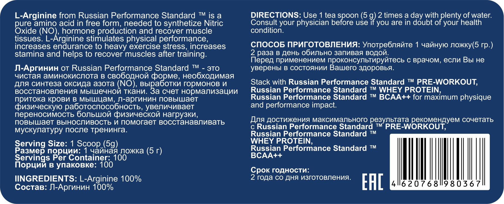 Добавьте первый отзыв “RPS L-Arginine 500 гр. (RPS)”