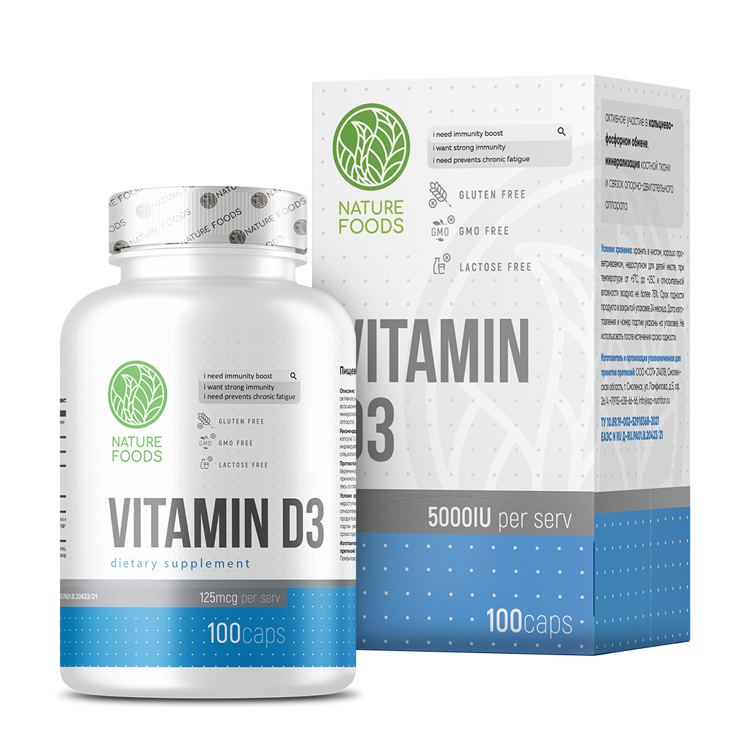 Nature Foods Vitamin D3 5000 IU — витамин D3 или холекальциферол. Представляет собой жирорастворимый витамин, который наш организм получает из вне, с пищей. Под действием ультрафиолетовый лучей, витамин D3 в организме приобретает активную форму. Благодаря чему выполняют свое главное предназначение в организме – усвоение кальция и фосфора. Так же витамин D3 принимает активное участие в работе иммунной системы, что делает его одним из важнейших компонентов в ежедневном рационе.